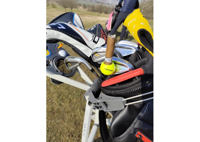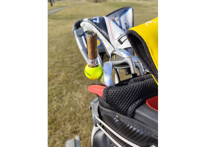 Tento ručne vyrábaný držiak cigary z pravej golfovej loptičky je navrhnutý pre hráčov, ktorí chcú spojiť funkčnosť s eleganciou. Diskrétny, pevný a vizuálne originálny doplnok, ktorý prirodzene zapadne do golfového vybavenia.